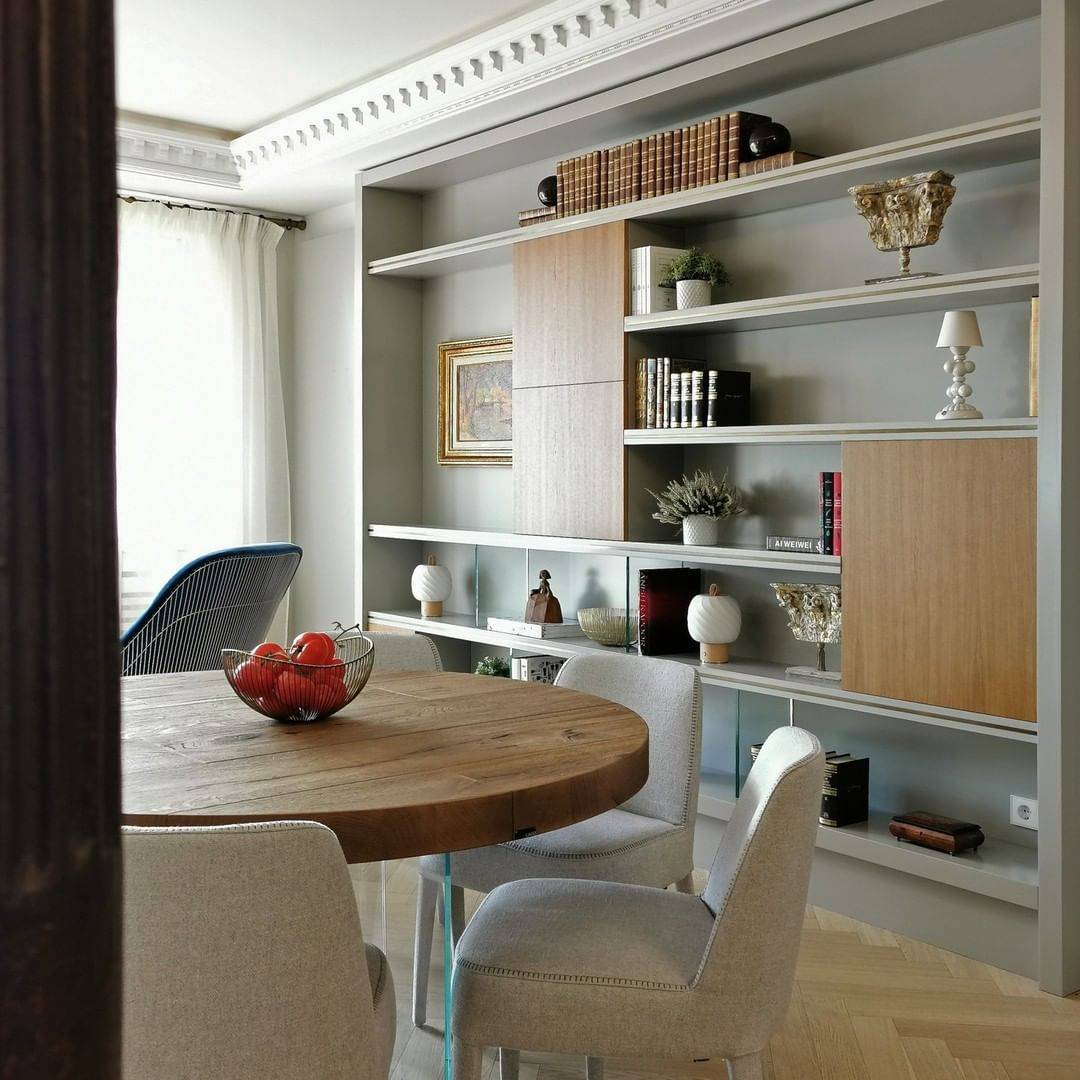 Armonía e inspiración es lo que nos produce este espacio exclusivo configurado con piezas icónicas y donde la madera toma especial protagonismo. Las formas de las sillas de comedor contribuyen a potenciar esa armonía y dialogan muy bien con los diferentes tonos de madera utilizados en la composición.