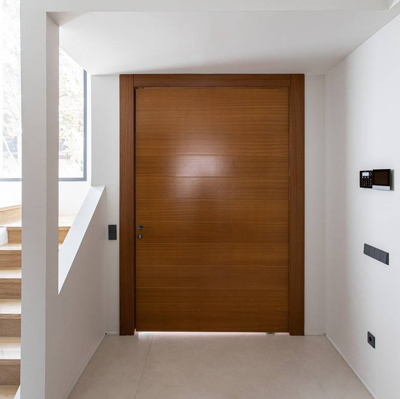 En este caso nos encontramos con una puerta que se mimetiza a la perfección con la construcción de la casa, hasta el punto de que solo podemos apreciar su marco. Este diseño minimalista es ideal para zonas en las que queremos que el acceso a la estancia no sea tan evidente.