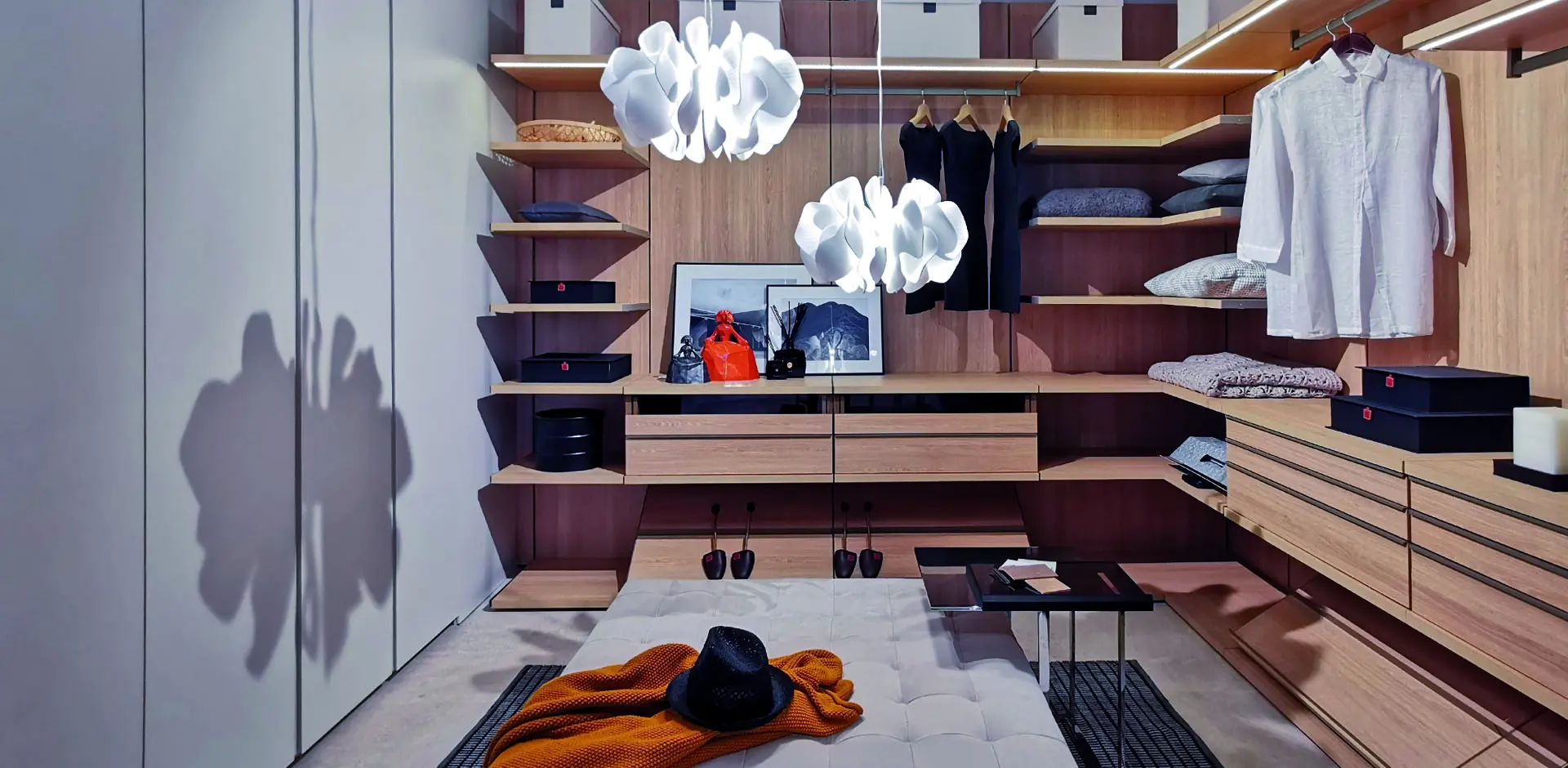 Además de ser distribuidores, en Gunni & Trentino diseñamos nuestros propios modelos de armarios y vestidores. Nuestros sistemas permiten una total personalización tanto de materiales como de composición, para adaptarlos al cliente hasta el más mínimo detalle. Maderas nobles, maderas exóticas, cuero, lacas, cristales lisos, ahumados o teñidos, metales cromados, aluminio, interiores forrados en lino, cierres amortiguados, herrajes de la más alta calidad, y gran variedad de acabados, nos permiten crear vestidores únicos.
