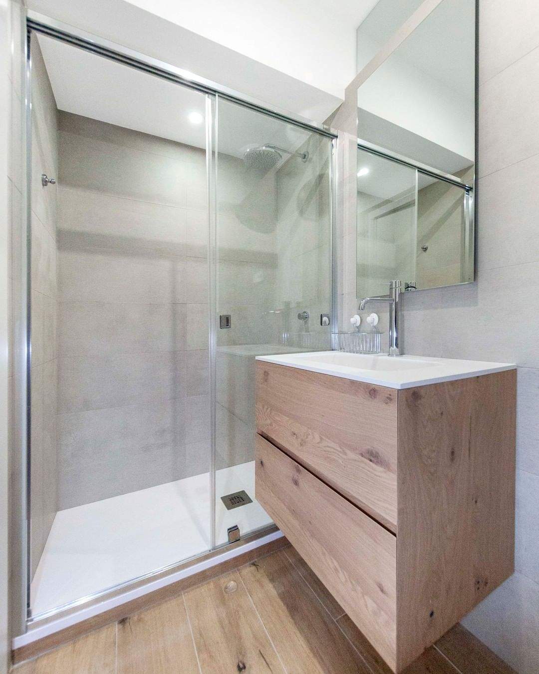 En este caso se ha apostado por materiales elegantes combinados con tonos claros y neutros, además de instalar un inodoro suspendido para dar más sensación de espacio (otra característica muy demandada en este tipo de espacios).