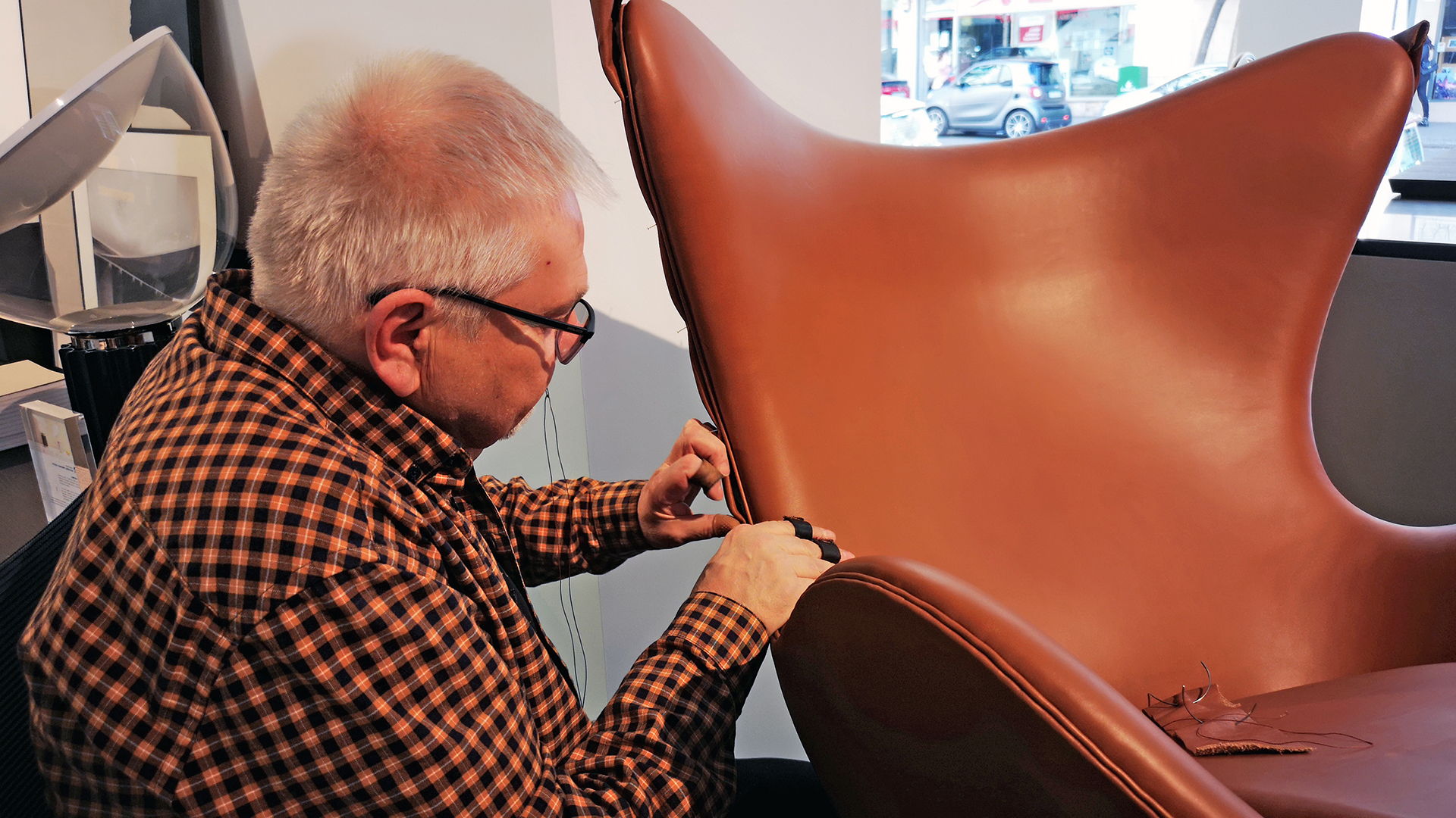 Hans Mannerhagen confecciona la butaca Egg de Fritz Hansen, en GUNNI&TRENTINO