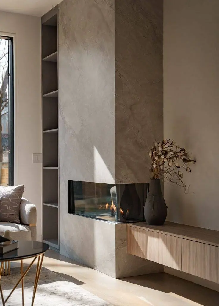 Chimeneas de Piedra: Las chimeneas de piedra, ya sea en mármol, granito o piedra natural, añaden un toque de elegancia clásica a cualquier espacio.
