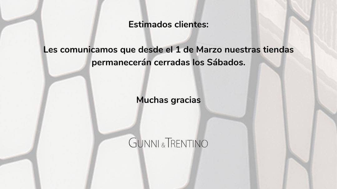 Estimados clientes les informamos que a partir del 1 de marzo nuestras tiendas permanecerán cerradas los Sábados. Muchas gracias