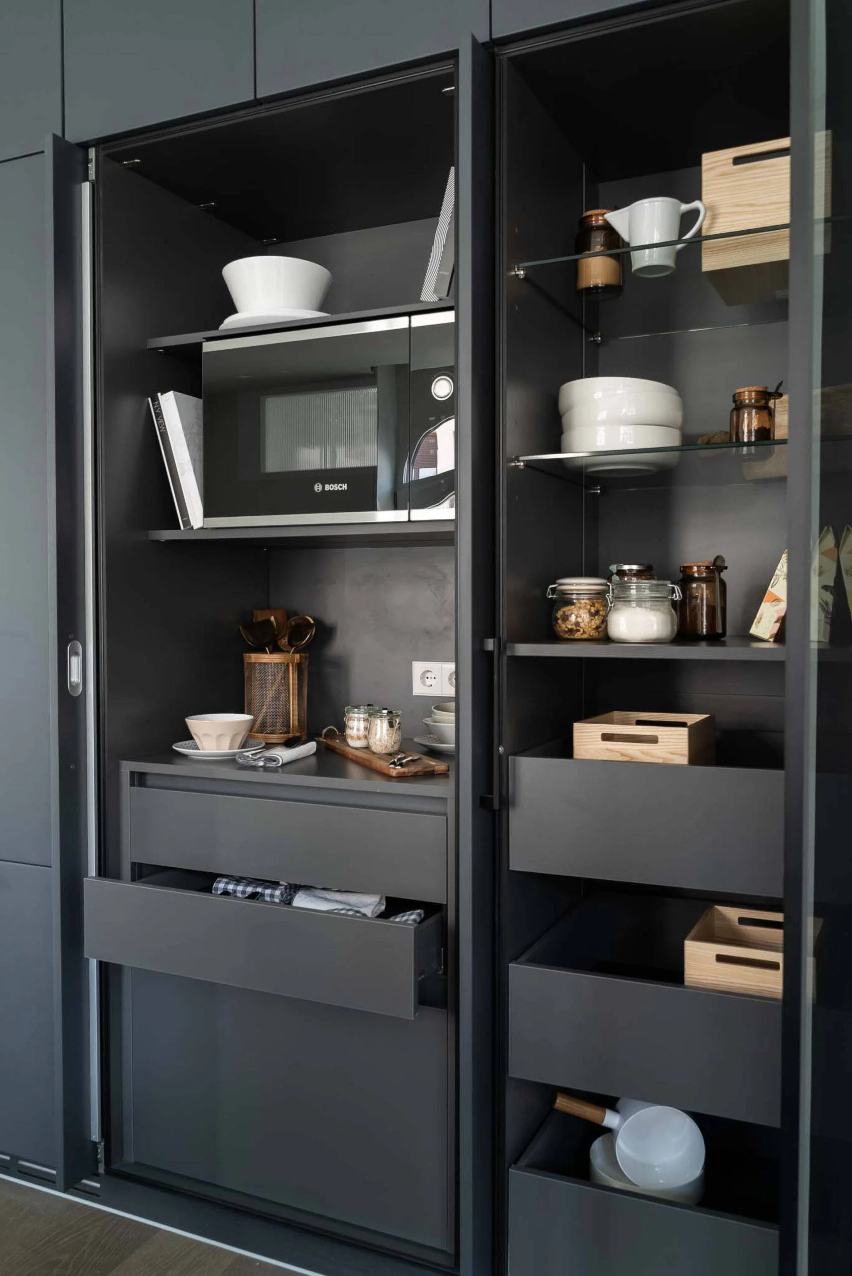 Los desayunadores son muebles clave para el diseño de nuestras cocinas, ya que cumplen una función importante en la organización de este espacio. Además de aportar una mayor facilidad a la hora de preparar los desayunos, este mobiliario cuenta con un diseño propio y único que generalmente consiste en una iluminación interior, una superficie de apoyo o trabajo, y enchufes para los pequeños electrodomésticos destinados a la elaboración del desayuno. En definitiva, es un armario encargado de almacenar todo lo necesario desde tazas, platos hasta los electrodomésticos, de una forma organizada siguiendo con el diseño integral de tu cocina.