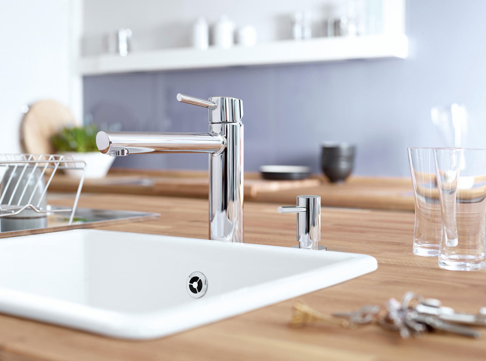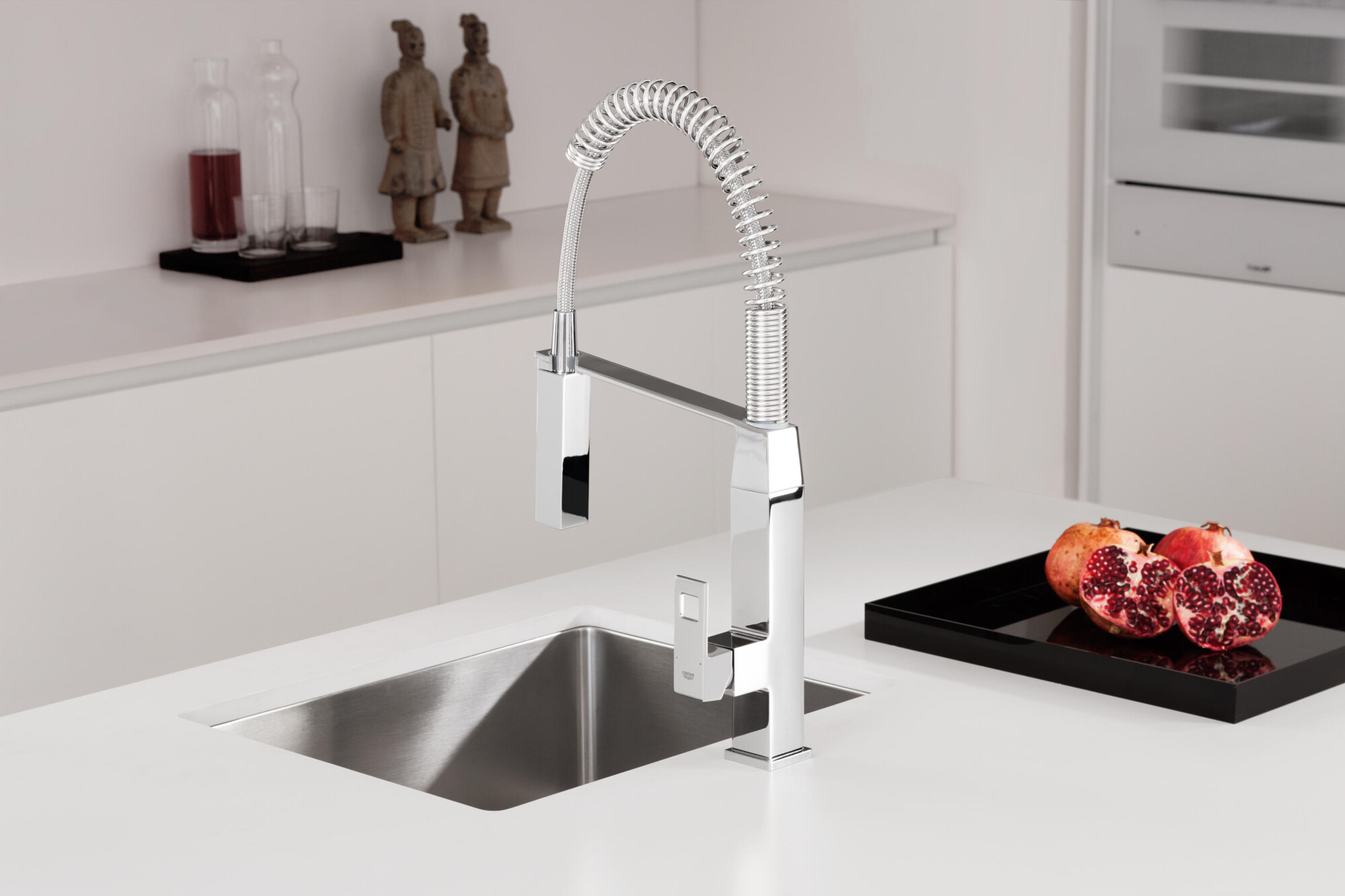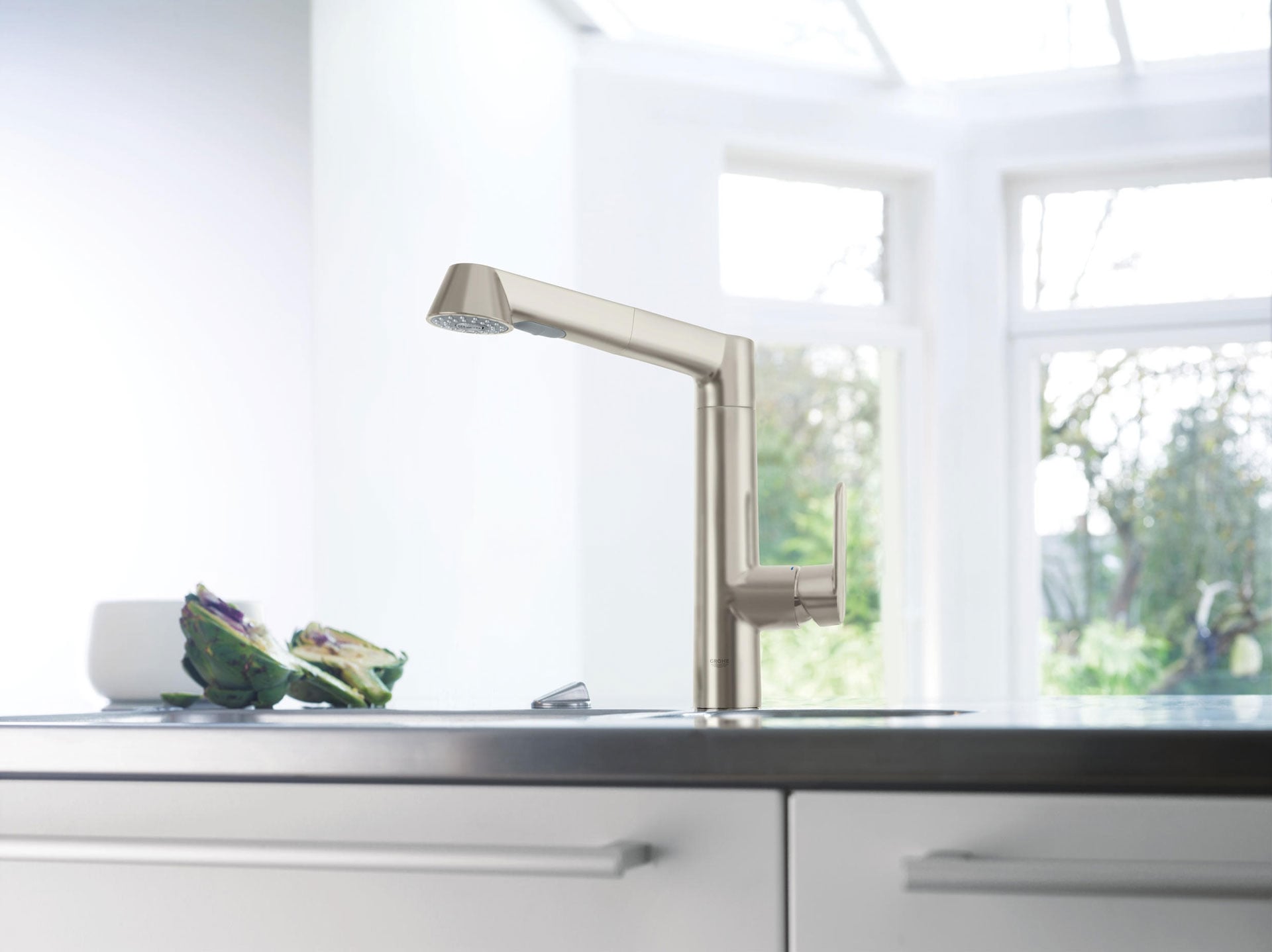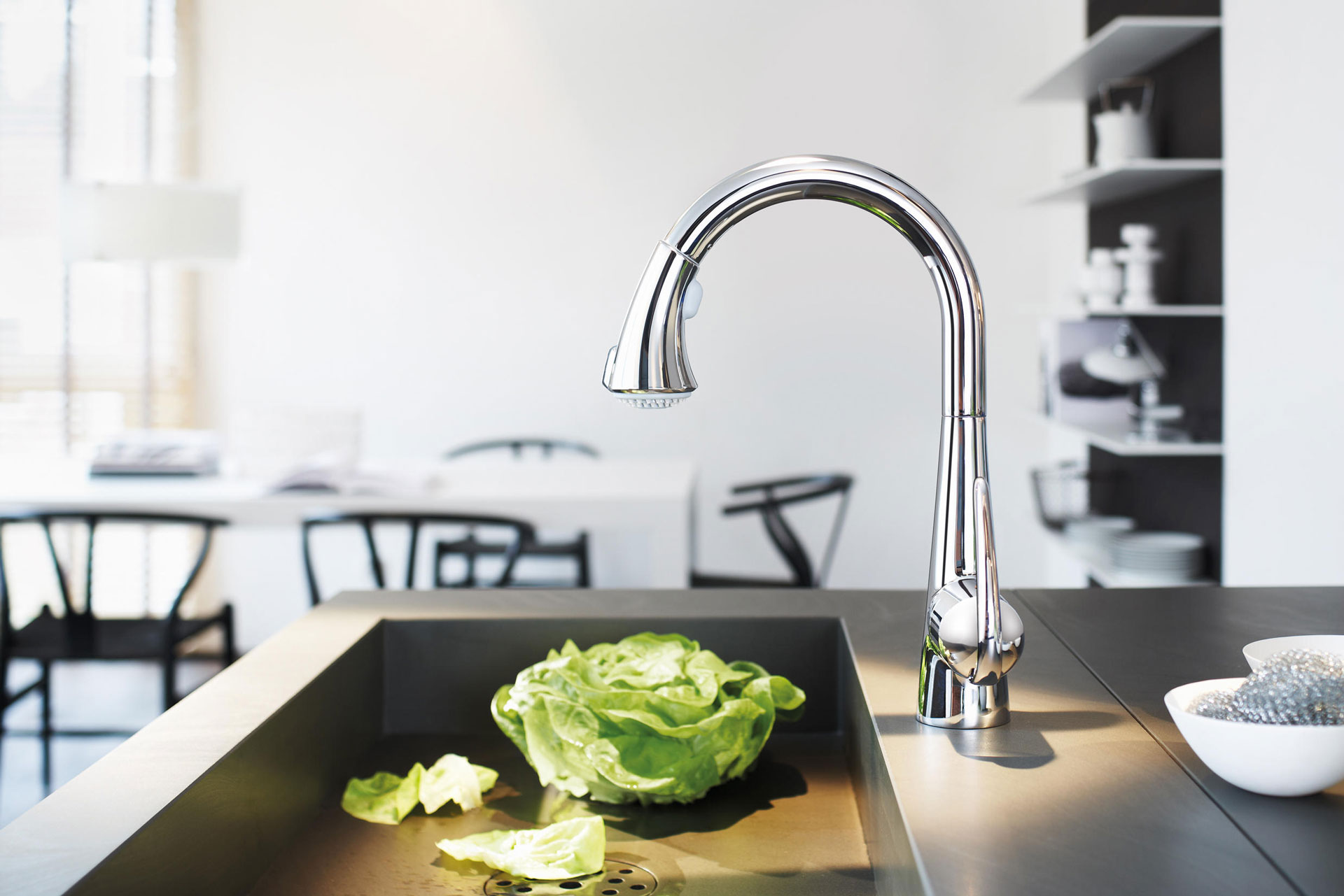 Kitchen faucets by GROHE blend the latest designs with a myriad of features that bring real benefits to the kitchen. Fascinating designs are combined with exceptional product features to ensure that every moment spent at the kitchen sink is a pleasant experience rather than a hassle.