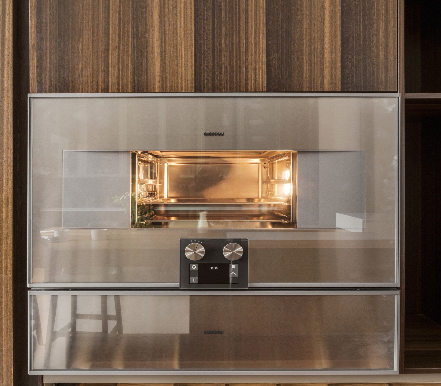 Appliances play a crucial role in kitchen décor, often taking centre stage. Consider, for example, the striking extractor hoods by Gutmann. Also, if we choose ovens such as those by La Cornue or Smeg, and cooktops by Gaggenau or Sub Zero Wolf. Incorporating innovative designs with eye-catching shapes in interesting materials ensures a lasting impact. Many top-tier brands we distribute offer designs that allow for combining various cooking methods in the same area: ceramic hobs, Teppan Yaki, grills, gas burners, fryers, etc. This provides exceptional versatility, enabling the use of different cooking methods in one kitchen workspace without the need to move around.