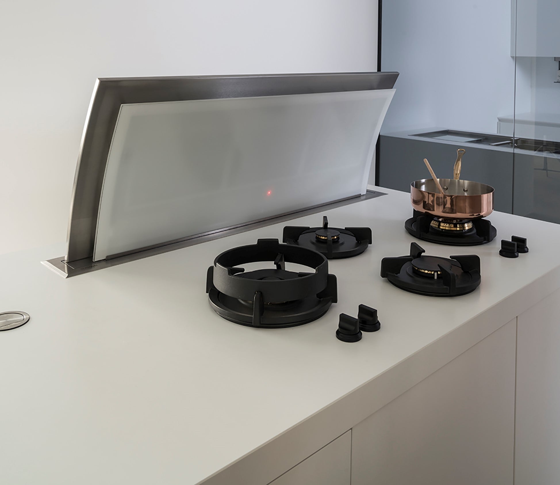 At Gunni & Trentino, we have the best silent technology to collect steam and odors through a group of extractors, which can be controlled manually or automatically, and can be installed on the ceiling, on the wall, inside cabinets, on the islands or in the same cooktop.