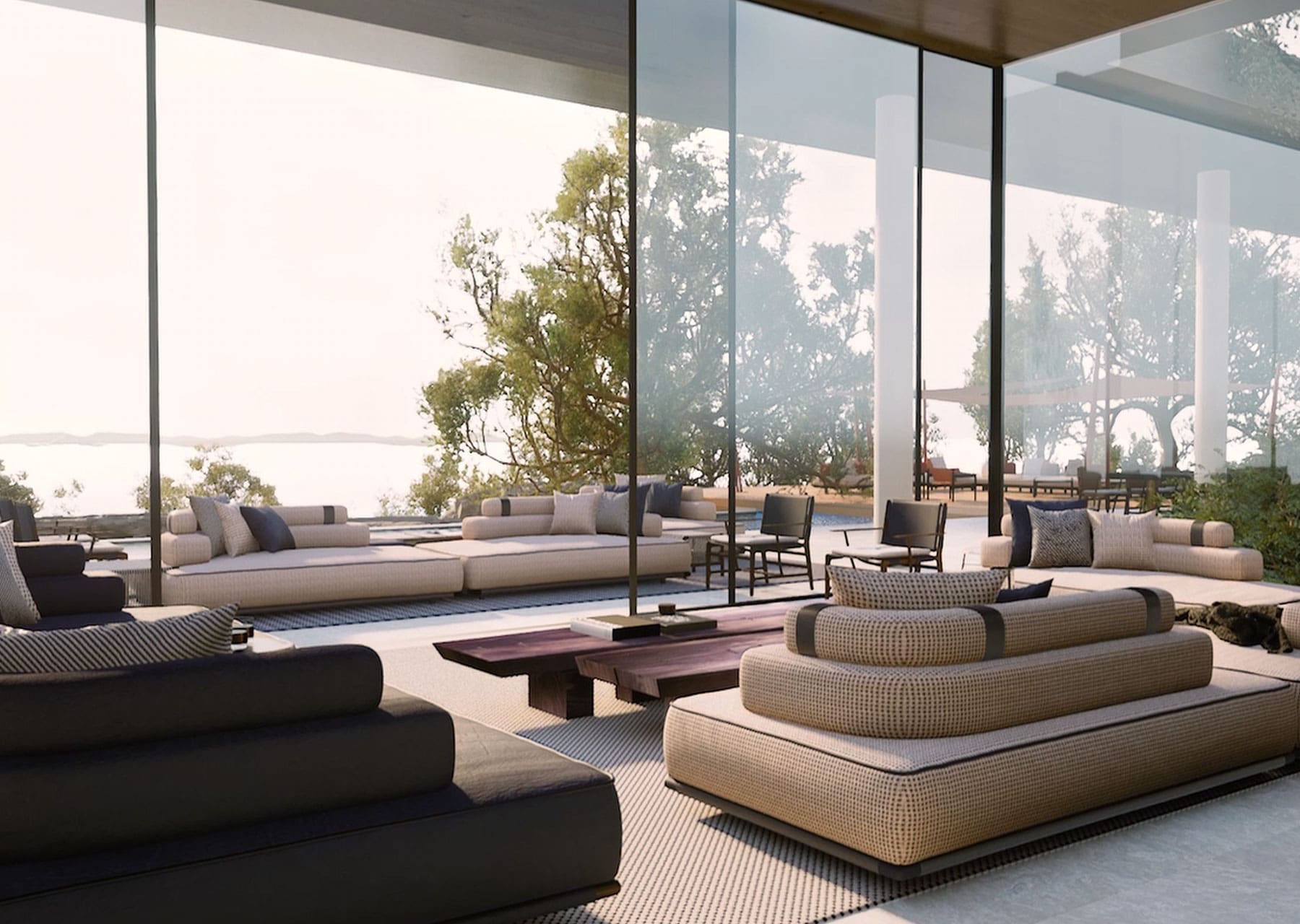 All of this enables us to create refined and original environments, with compositions of sofas, chairs, loungers, kitchens, tables, and other outdoor decoration accessories designed to successfully meet people’s needs, creating outdoor relaxation environments that allow us to disconnect and enjoy the comfort of these spaces.