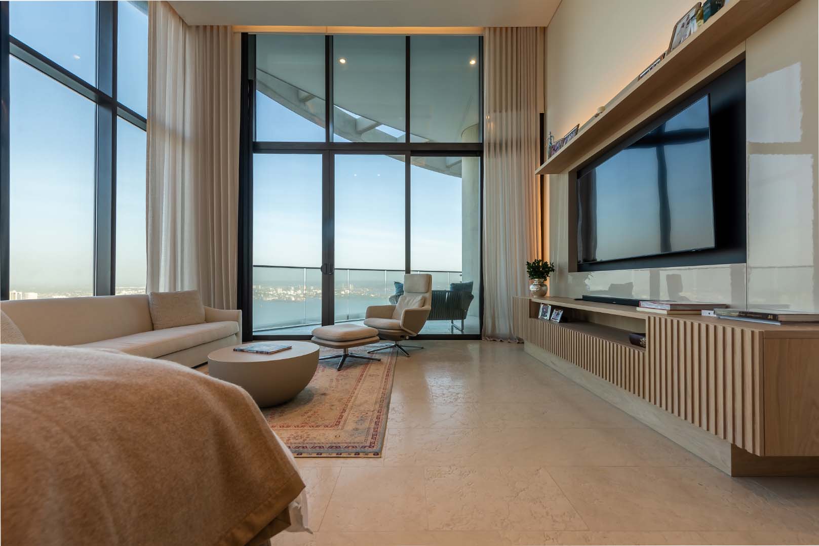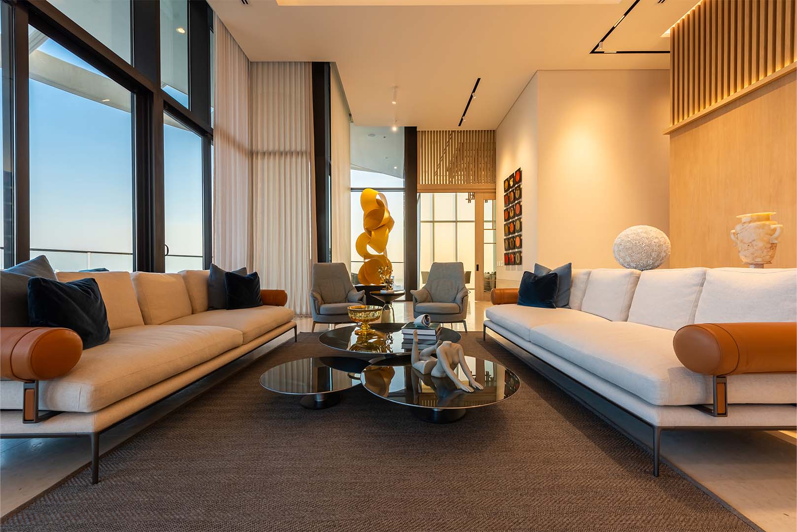 Outside, the home offers a sensory experience in constant connection with the landscape. The furniture adapts naturally to the surroundings: outdoor pieces that combine comfort, elegance, and durability, blending with the textures of the vegetation and stone. Every corner is designed to encourage rest, contemplation, and enjoyment of the natural surroundings.