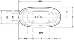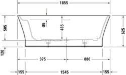 The Cape Cod bathtub by Duravit, designed by Philippe Starck, is made of DuroCast Plus with an integrated skirt. It features a freestanding design, two backrest angles, and a 205-liter capacity. It includes an automatic drain and overflow in white.