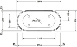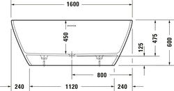 Freestanding bathtub measuring 160 x 75 cm with a contemporary design and integrated apron. Made of cast iron with a matte white finish, it offers an interior depth of 45 cm and a sloping backrest at both ends for a comfortable and enveloping bathing experience. Includes automatic drain, overflow, and support frame.