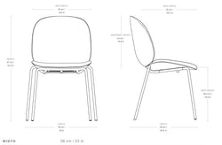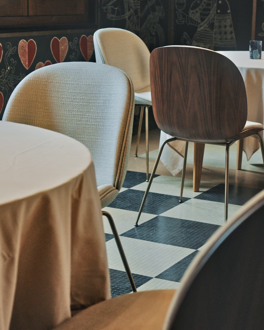 The Beetle dining chair combines contemporary design, elegance, and functionality. Inspired by the shape of a beetle, its stackable four-legged frame and wide variety of upholstery options make it a versatile and customizable option for any space.