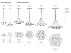 The 28.19 Cluster ceiling lamp, designed by Bocci, is a suspended lighting installation composed of 19 blown glass diffusers in a variety of colors and transparent finishes. Its organic and dynamic design makes it a striking interior piece.