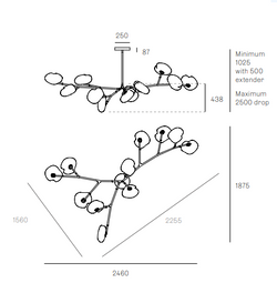 The 73.11A.1 ceiling lamp, designed by Bocci, is a suspended luminaire composed of eleven blown glass diffusers with a fluid and organic design. Its articulated structure with a metal arm gives it versatility and a unique visual impact in interior spaces.