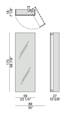 The Camper model, designed by T. Colzani in 2019, is an elegant wall-mounted coat rack with a mirrored front and a Canaletta walnut frame. This piece of furniture stands out for its functional and refined design, ideal for modern entryways and dressing rooms.