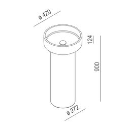 Column washbasin of Ø42 cm, made of natural refractory clay or in a dark finish, without a tap hole and with a free drain.