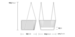 The Bitta outdoor Club swing is distinguished by its seat braided with polyester rope and comfortable cushions, all made with waterproof materials.