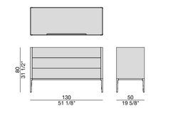 The Nara chest of drawers is in Canaletta walnut with a metal base made exclusively from cast aluminum, with a matte black finish.