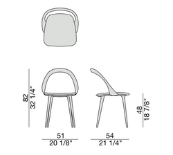 The Ester chair by Porada, designed by S. Bigi, combines innovative design with high-quality materials. It offers various customization options in wood finishes and upholstery. It can also be customized with fabric provided by the customer, allowing it to adapt to any space or style.