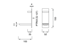 Progressive wall-mounted mixer with L. 105 mm spout, vertical mounting.