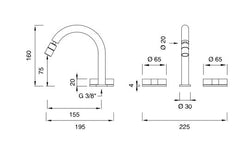 Tap with 3 holes and adjustable spout H. 160 mm