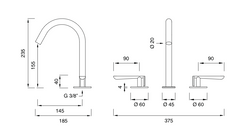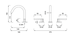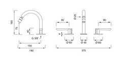 LTZ12 : Faucet with 3 holes and adjustable spout H. 160 mm