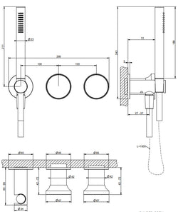 The Gessi concealed shower set is part of the Origini collection. It is a water control and distribution solution for the shower area that integrates a mixer, diverter, and water outlet with a hand shower holder.