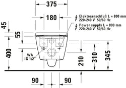 Wall-hung toilet that combines aesthetics and functionality. It integrates rear, front, and pulsating flush technology, a heated seat, a night light, and a remote control, all within a minimalist, antibacterial design.