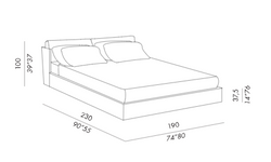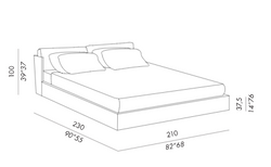 The Kira bed , designed in 2016, is an elegant and sophisticated piece characterized by its tall, curved headboard , creating a warm and inviting aesthetic. Its detachable wooden frame and padded upholstery offer a perfect balance between design and comfort.