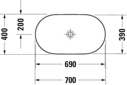 Duravit Luv countertop washbasin, elegant oval design, dimensions 700 x 400 mm, available in three finishes: White / Grey High Gloss Satin Matt, White High Gloss and White Satin Matt.