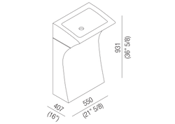 Rectangular Carrara white marble washbasin, wall-mounted with floor support, without tap hole and with free-flowing drain. Includes a fixing kit and requires the use of a retractable siphon.