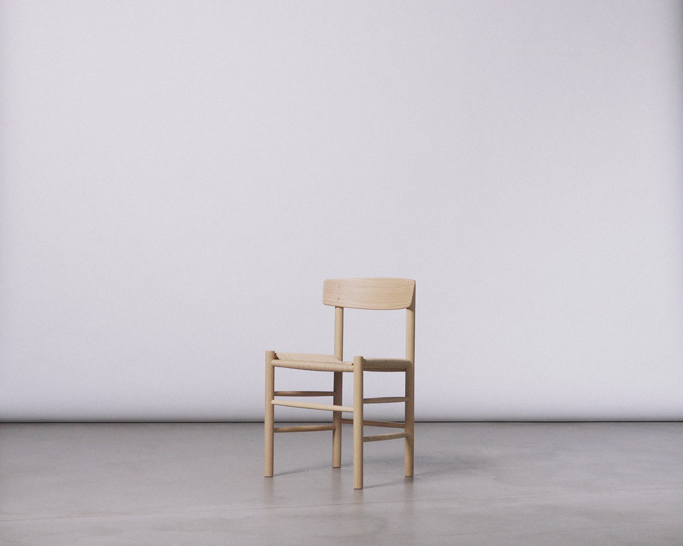 The J39 Mogensen 3239 dining chair , designed by Børge Mogensen in 1947, is an iconic piece renowned for its timeless design and durability. It is crafted from solid wood with a woven paper rope seat.