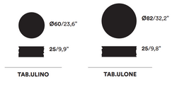 The Tab.ulino - Tab.ulone coffee table, designed by Bruno Rainaldi, stands out for its hand-crusted aluminum frame and mirrored glass top. Each piece is unique thanks to its handcrafted construction and is available in chrome or gold finishes, ideal for sophisticated spaces.
