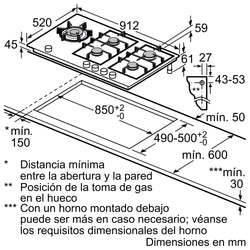 The Siemens iQ700 series gas hob is a 90cm gas hob designed for precision and power in the kitchen. Featuring stepFlame technology, cast iron grates, and a powerful wok burner, it guarantees precise flame control and an efficient cooking experience.