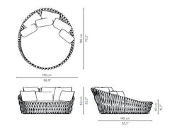 The Tosca sofa bed, designed by Monica Armani for Tribù, is a luxurious outdoor piece that combines comfort and sophistication. Its powder-coated stainless steel frame and Tricord® weaving ensure durability and weather resistance.