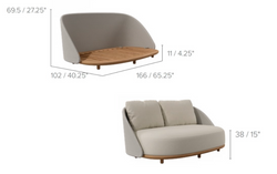 The Elio two-seater sofa stands out for its enveloping design, inspired by the changing light of the sunset. Its handcrafted weave over a teak frame creates a cozy and elegant silhouette, ideal for refined outdoor spaces. Available in various versions and finishes, it allows for multiple personalized configurations.
