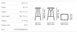The Spine 1736 stool with a wooden base , designed by Space Copenhagen in 2014, combines the comfort of a dining chair with the social openness of a traditional stool. Its design focuses on attention to detail and the use of high-quality materials, resulting in a functional, elegant, and durable piece.