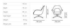 The Swoon Lounge chair with a metal base, 1776 , designed by Space Copenhagen in 2019, is a modern armchair with a sculpted silhouette and organic curves that allow for multiple seating positions. Its versatile design makes it ideal for lobbies, reception areas, and lounges, offering a more relaxed alternative to traditional lounge chairs.