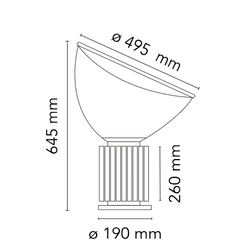 The Taccia PMMA lamp, designed by Achille and Pier Giacomo Castiglioni, is available in bronze, matte black, and anodized silver finishes, adapting to both classic and modern styles. Its painted aluminum reflector and adjustable PMMA diffuser guarantee elegant, indirect lighting. It includes an integrated LED with a dimmer to adjust the light intensity.