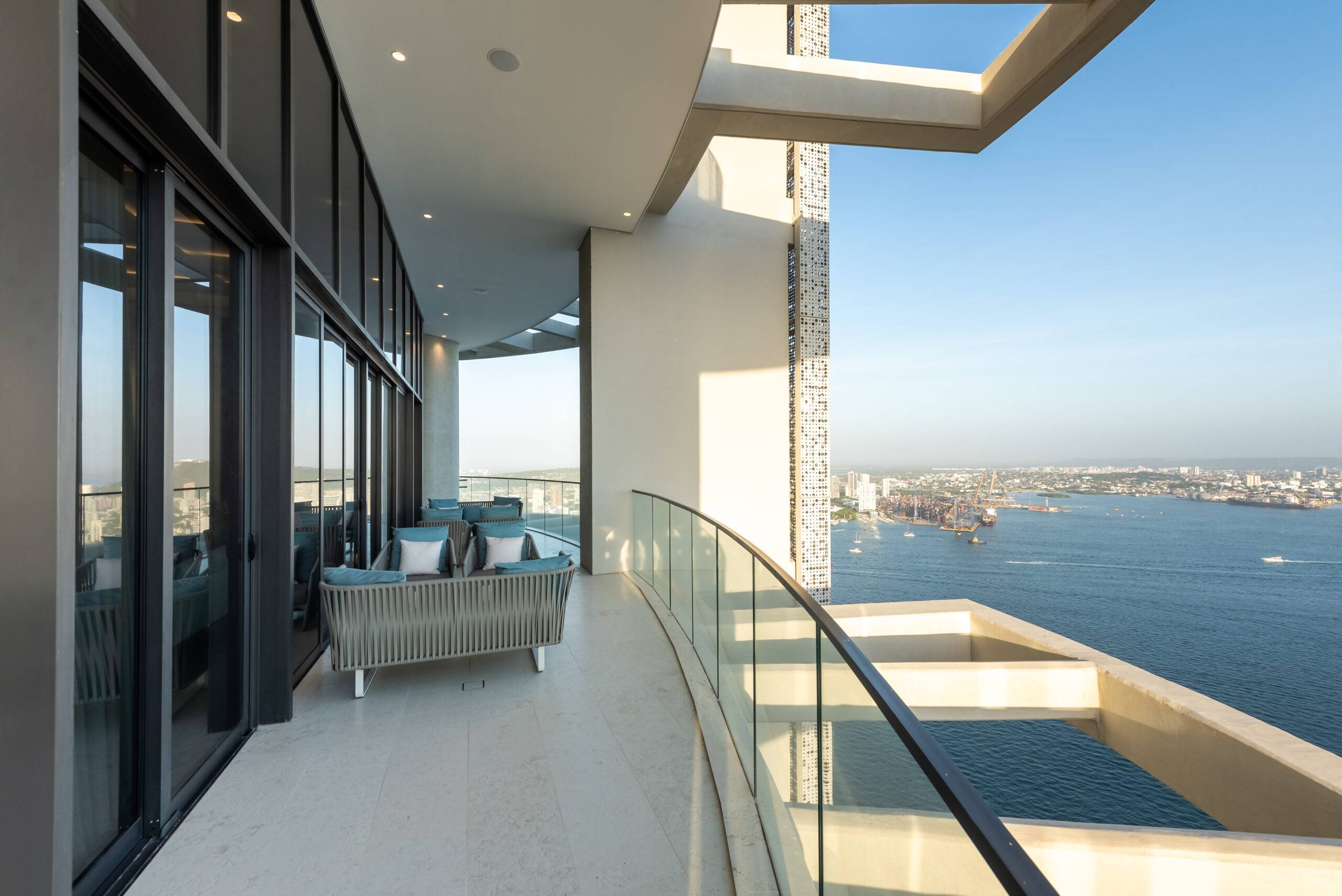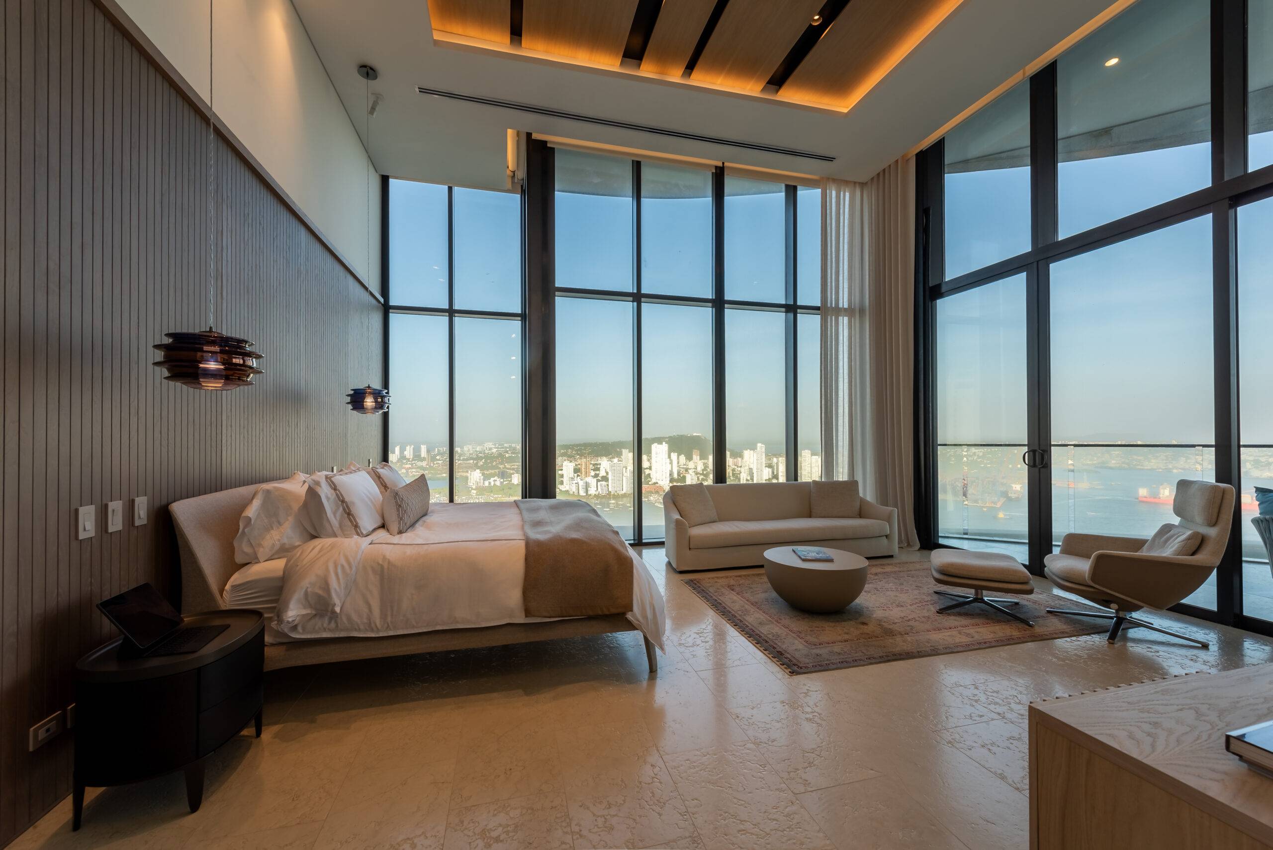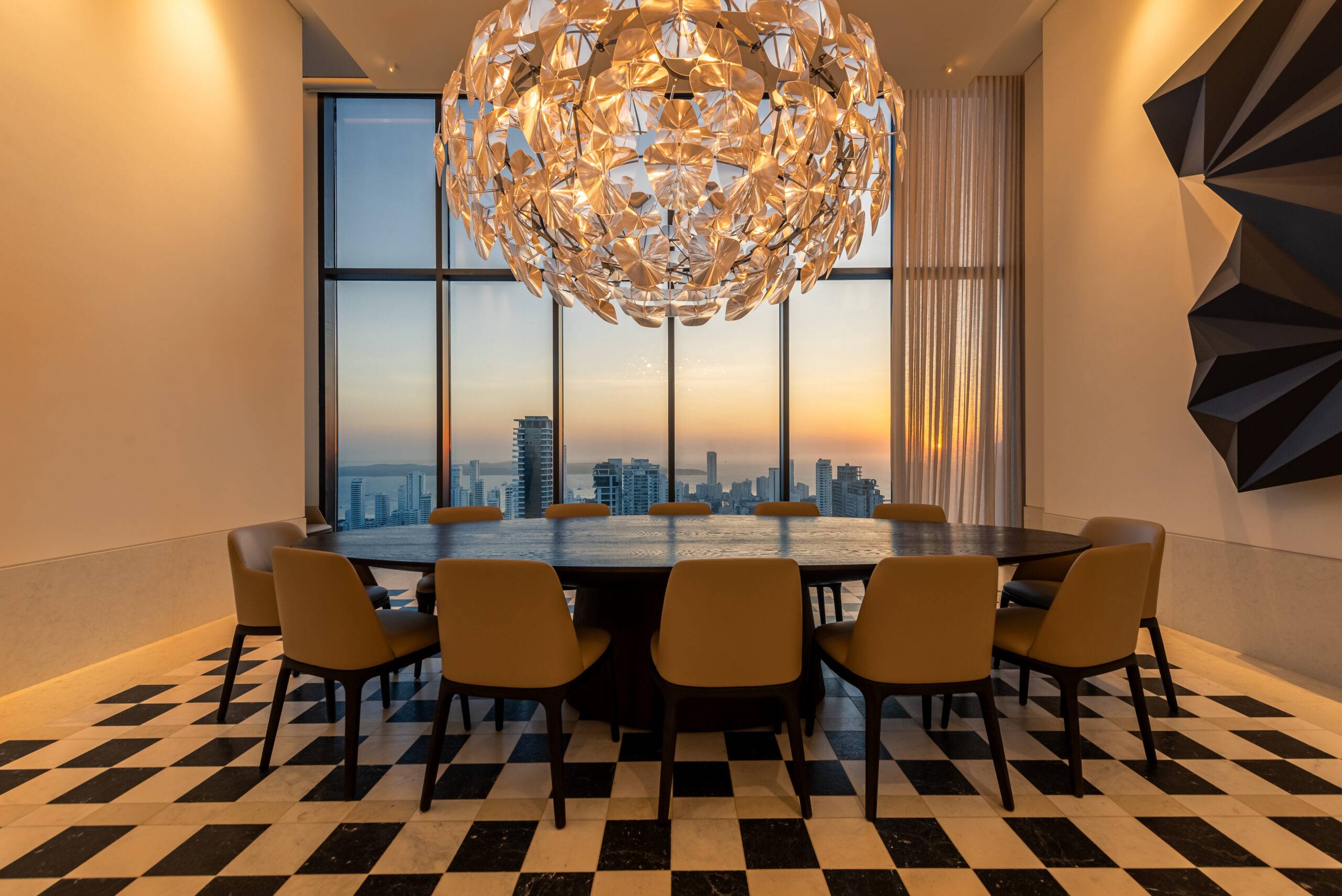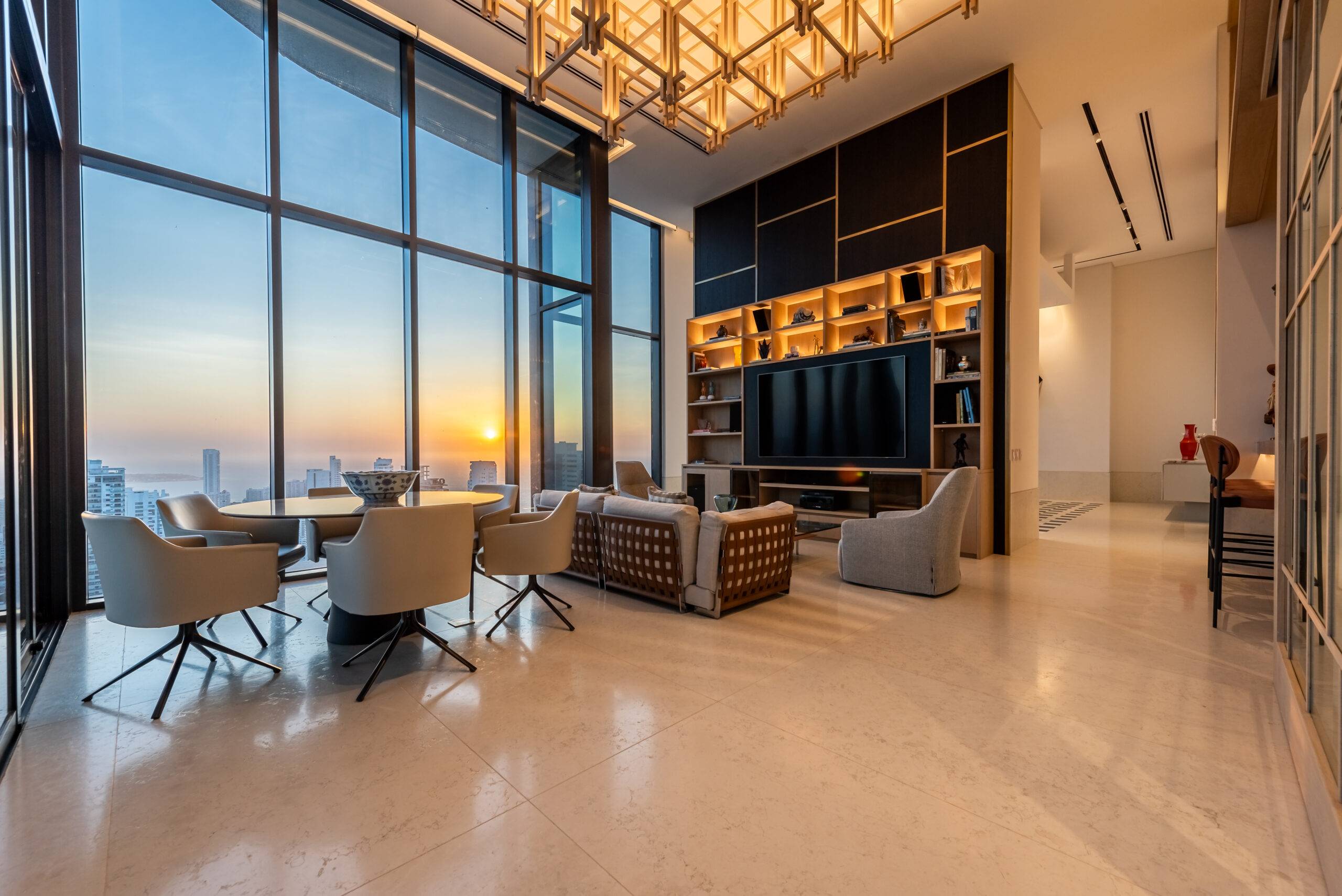 This exceptional residential project in Cartagena de Indias, Colombia, is located in an impressive skyscraper in the city. This floor offers panoramic views of the entire city. From the spacious living rooms to the cozy terrace, each space has been carefully designed to provide a unique living experience. Supplying furniture for the living rooms, terrace, dining room, and bedroom, we have sought to blend contemporary style with warmth and functionality, creating an atmosphere that invites relaxation and contemplation.