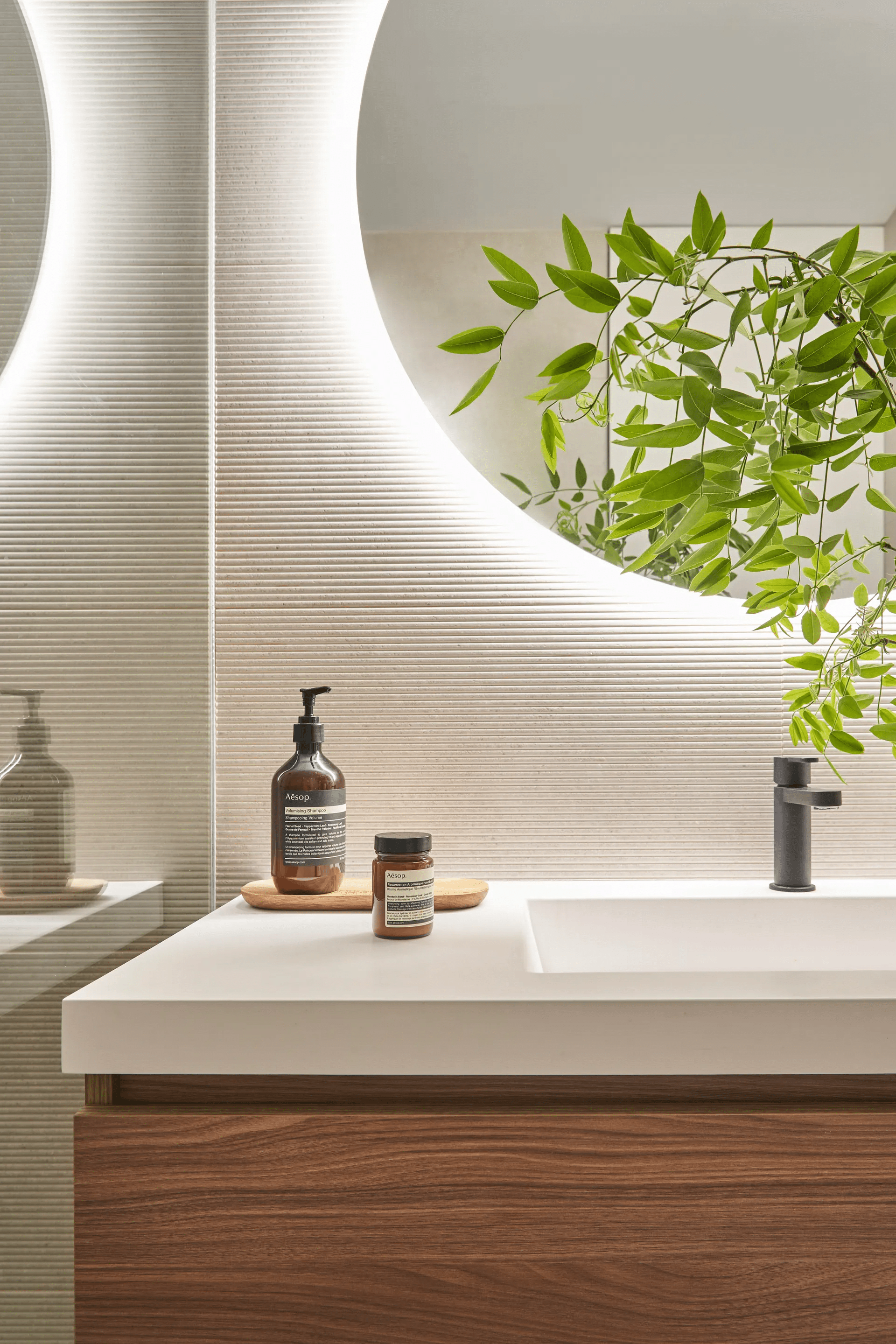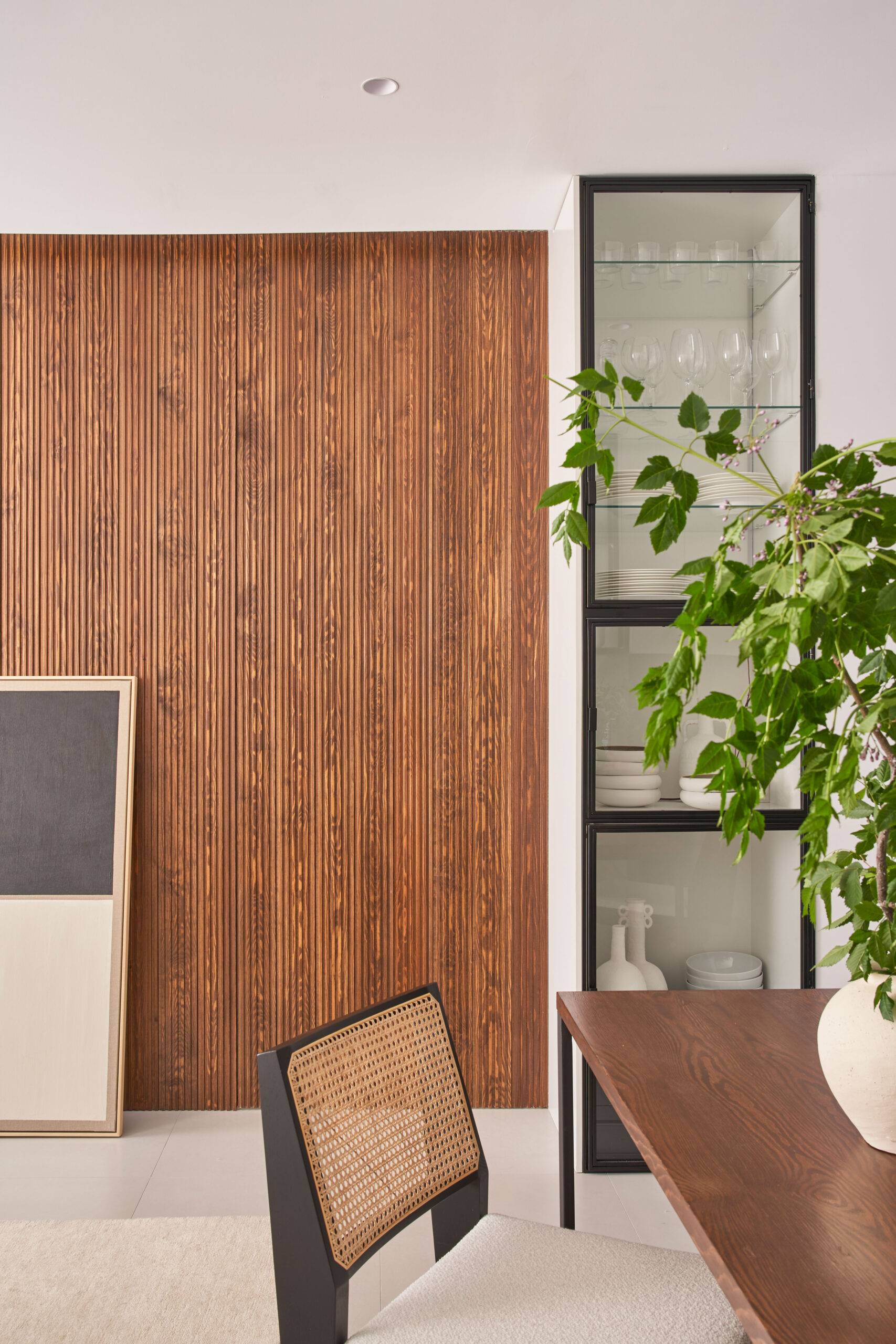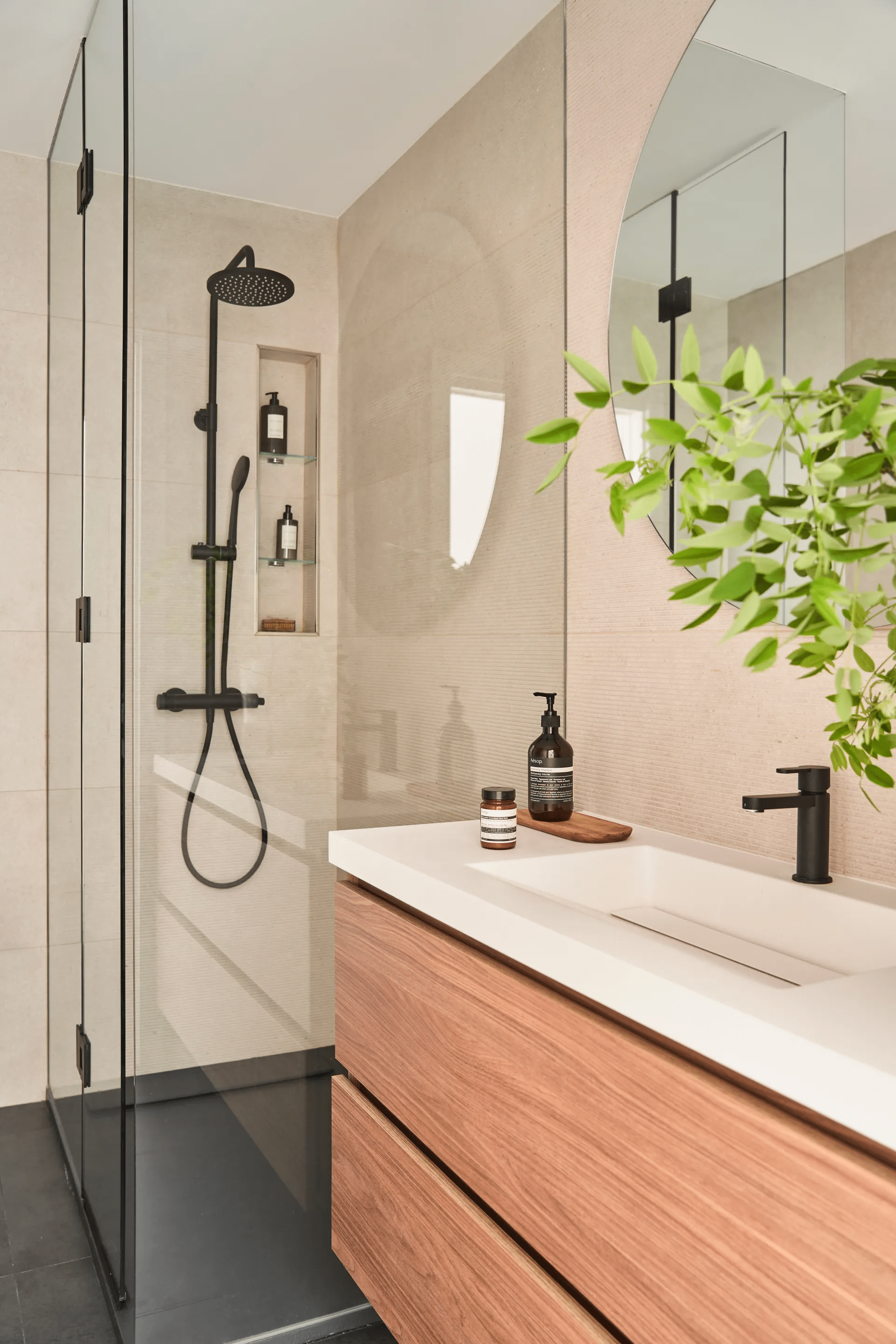 In the Guindalera neighborhood of Madrid, there is a unique and modern residence where the color palette, including taupe, beige, gray, and cream tones, creates a serene and tranquil atmosphere throughout the home.