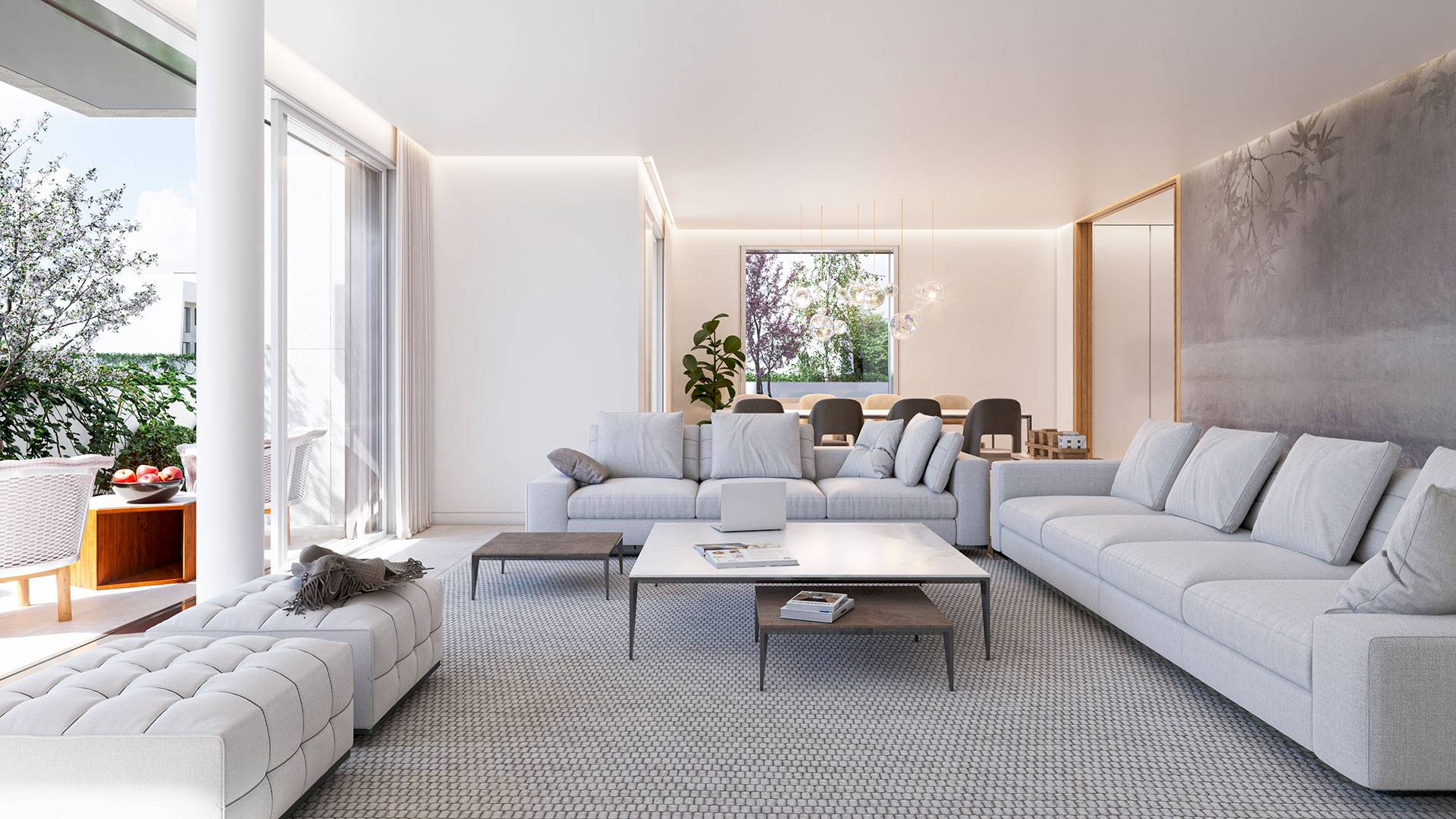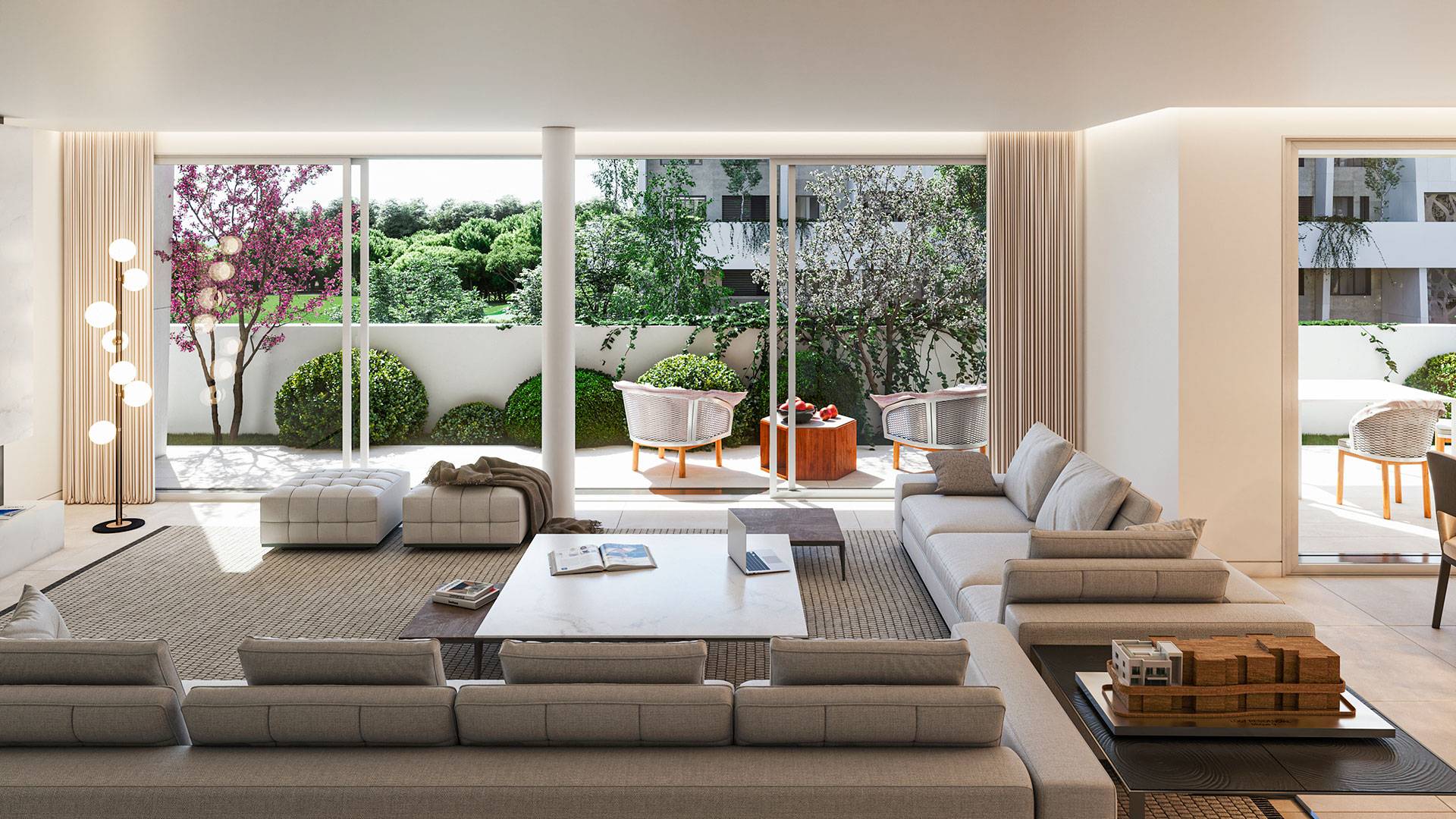 La Finca LGC7 stands out as the pinnacle of luxury and exclusivity within the LGC development, offering innovative architectural design that merges the concepts of single-family and multi-family housing. This residential project stands out for its huge windows that open up to panoramic views of the gardens and golf course, uniquely integrating the natural environment into the interior of the homes. The LAFINCA Architecture & Design team, led by Raquel Castellanos, has achieved a masterful synthesis between both concepts, allowing residents to enjoy the best of both worlds without compromise.