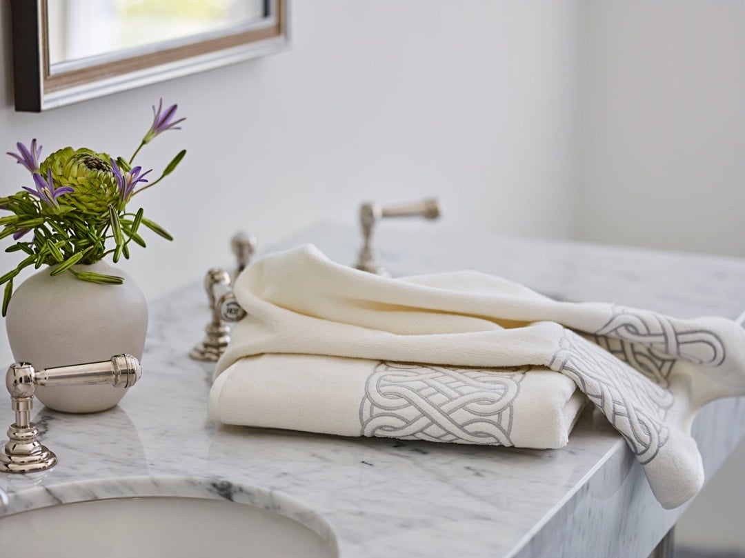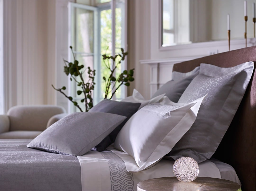 La mano, o sedosidad, de un tejido no es el resultado del conteo de hilos, sino más bien el proceso de acabado: un tratamiento del tejido para aumentar la durabilidad o el brillo. Las telas Frette pasan por un proceso de acabado patentado para crear un acabado súper suave y brillante como ningún otro.