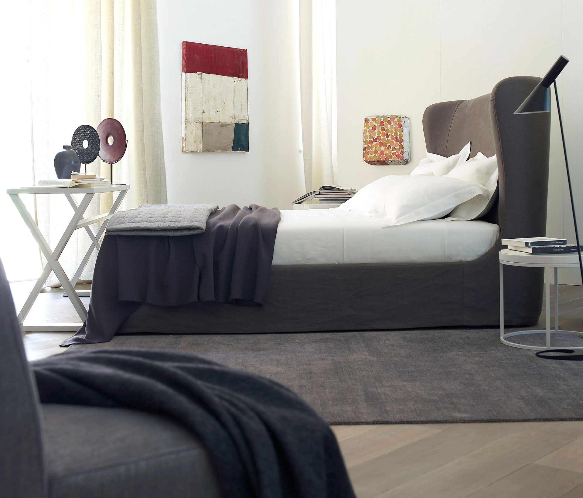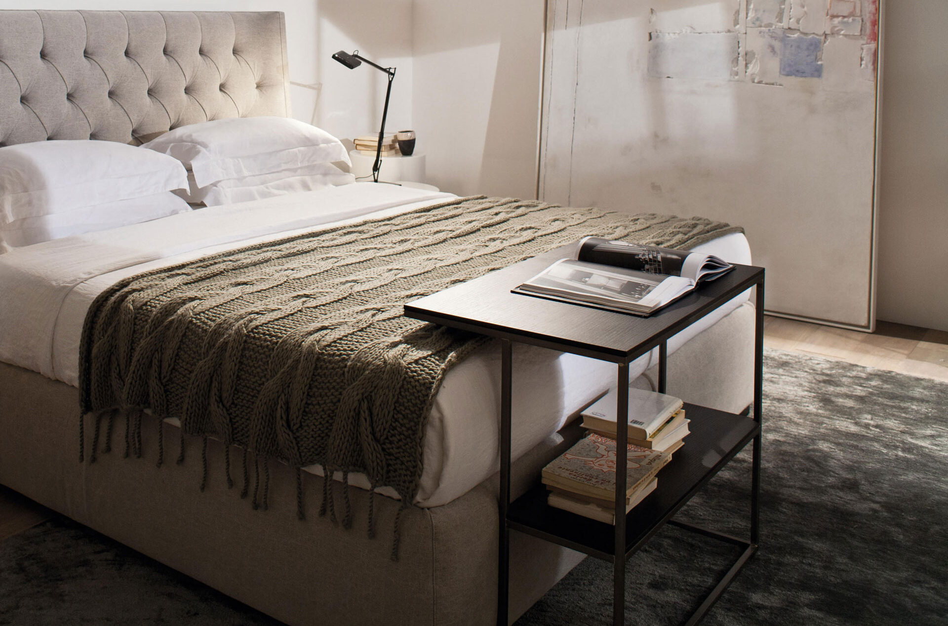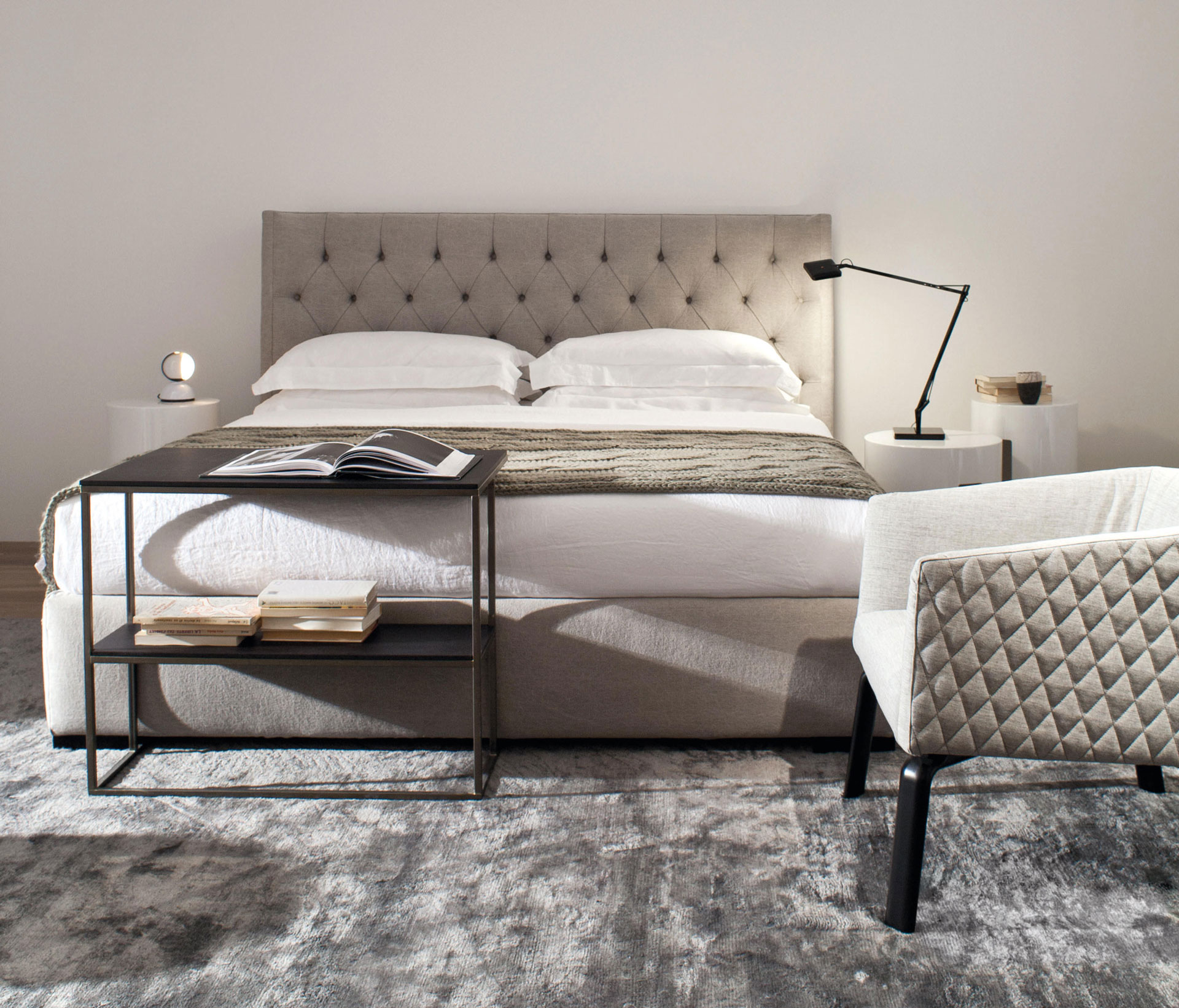 - Sleep: Una amplia colección de camas: cabeceros mínimos o maxi con acabados lisos o acolchados, bases con diferentes alturas y soportes de colchón que permiten una completa adaptabilidad a la anatomía del cuerpo. Mesillas de noche, cómodas, escritorios y complementos sugieren un dormitorio íntimo y sofisticado caracterizado por su propia identidad.