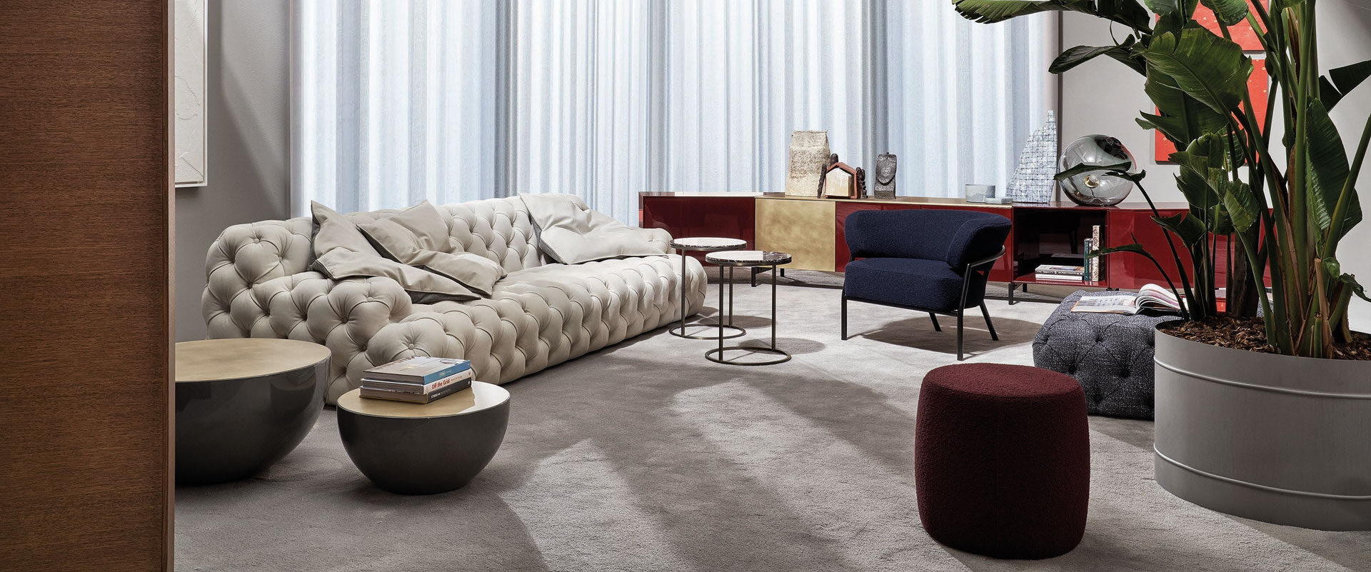 - Live: Sofás, sillones, chaise longue, mesas de centro, muebles de armario y complementos caracterizados por rótulos cuidados, proporciones precisas, volúmenes esenciales, detalles preciosos. Una colección atemporal, sofisticada, contemporánea pero sin compromisos con las tendencias temporales en la que el confort, no solo táctil sino también visual, es siempre una prioridad.