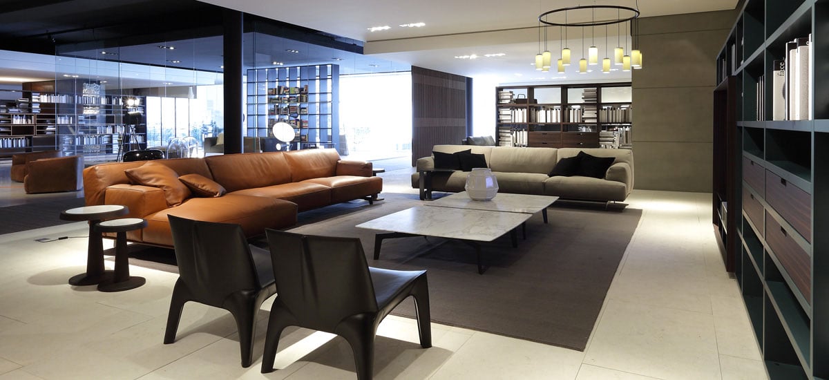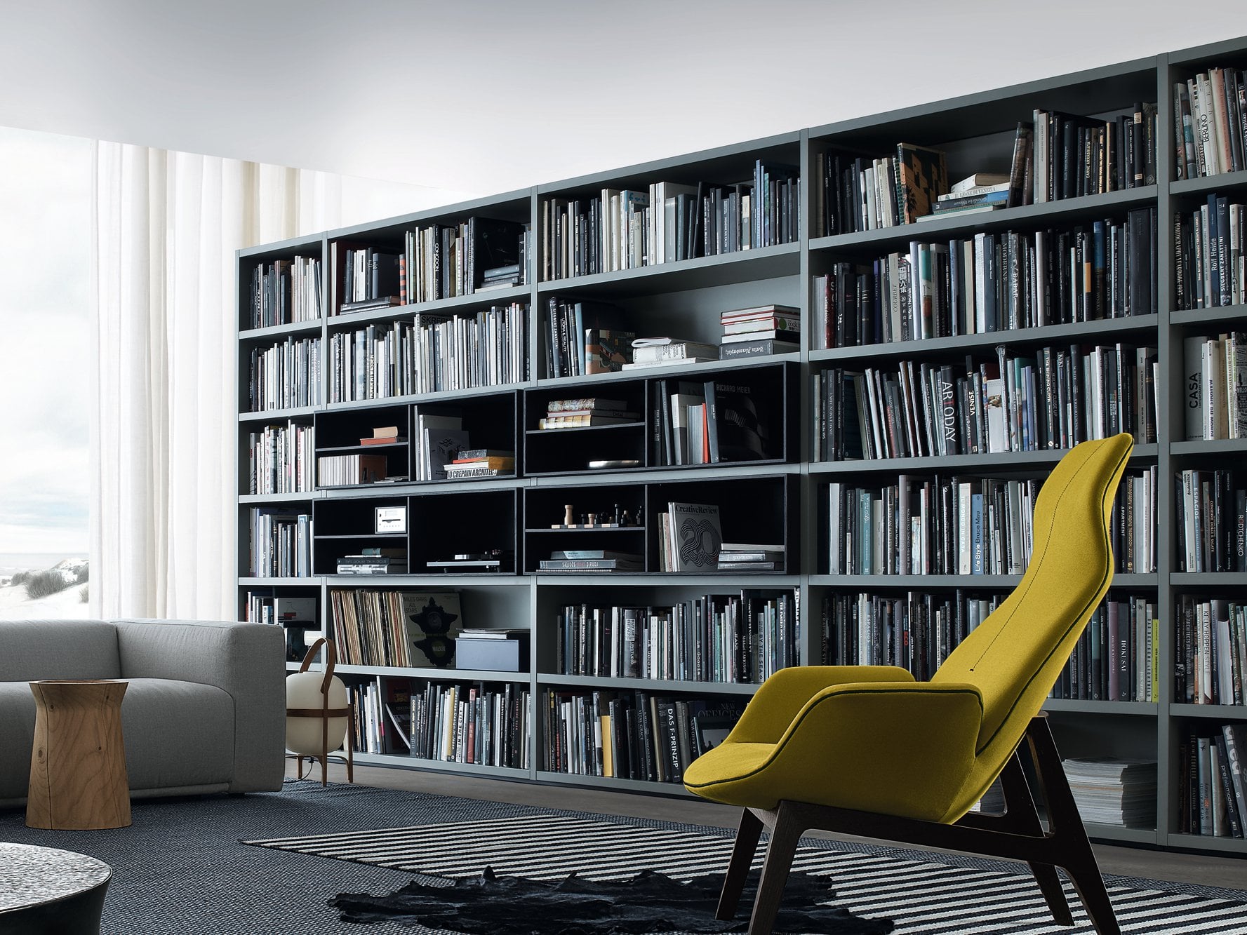 Las colecciones de la marca italiana de diseño Poliform abarcan sistemas, mobiliario y complementos para cada espacio: librerías, contenedores, armarios, vestidores, comodas, camas, sofás modulares, sillones, butacas y chaise-longues.