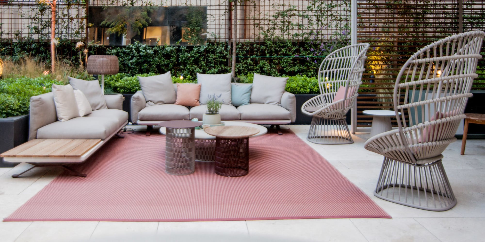 Disponemos de mobiliario para terrazas, jardines, zonas de piscina, spa y wellness al aire libre, patios interiores, porches e incluso cubiertas de yates y otras embarcaciones de recreo.