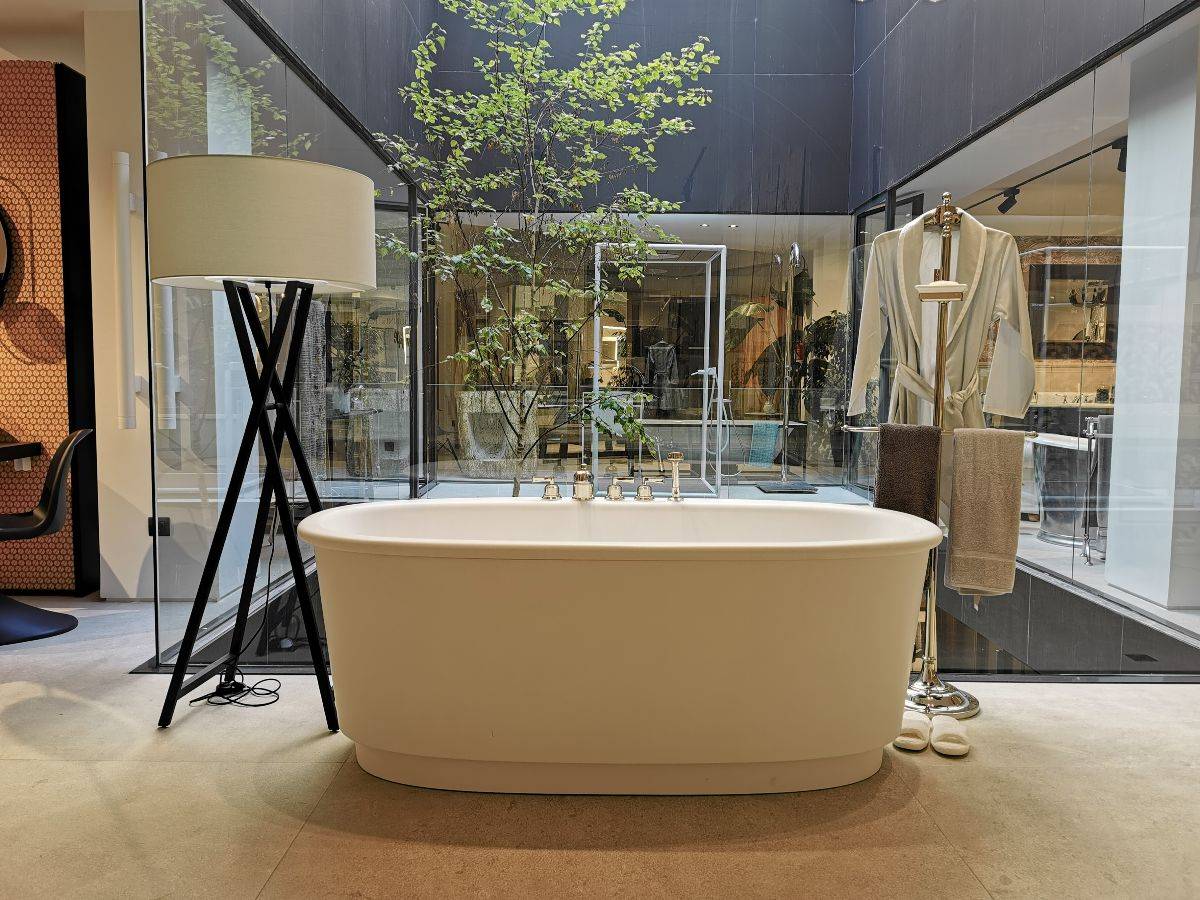 Por su parte, la firma italiana Devon&Devon presenta su bañera exenta Holiday diseñada en colaboración con el estudio de arquitectura Gensler. Inspirada en el sofisticado Art Déco, esta bañera esta enriquecida con detalles muy selectos como es el caso del pinto blanco, que bajo pedido, se puede revestir de mármol Calacatta blanco. Una auténtica delicia que se convertirá en la protagonista de tu baño de diseño