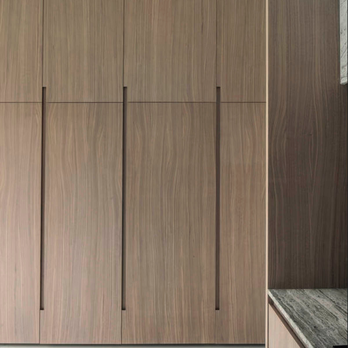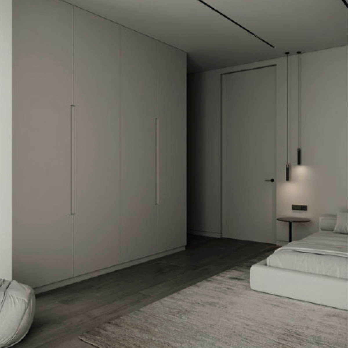Puertas elaboradas en tablero MDF de alta densidad, lacadas con varias capas de imprimación y fondo de poliéster. El acabado final se realiza con poliuretano 2K en efecto supermate, logrando: