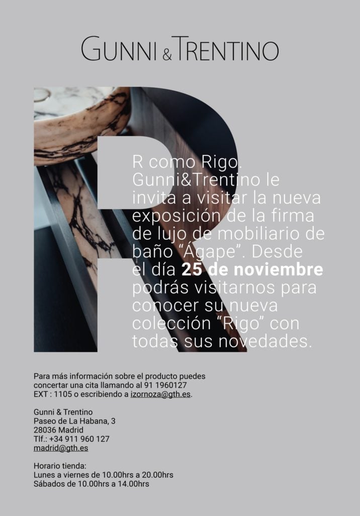Nuestra Flagship Store de GUNNI&TRENTINO, ubicada en Paseo de La Habana 3, Madrid,  está abierta de lunes a viernes de 10:00 a 20:00 horas y los sábados de 10:00 a 14:00 horas. Le invitamos a informarse del resto de exposiciones que se están presentando en este showroom referente en el mundo del  diseño y la decoración: